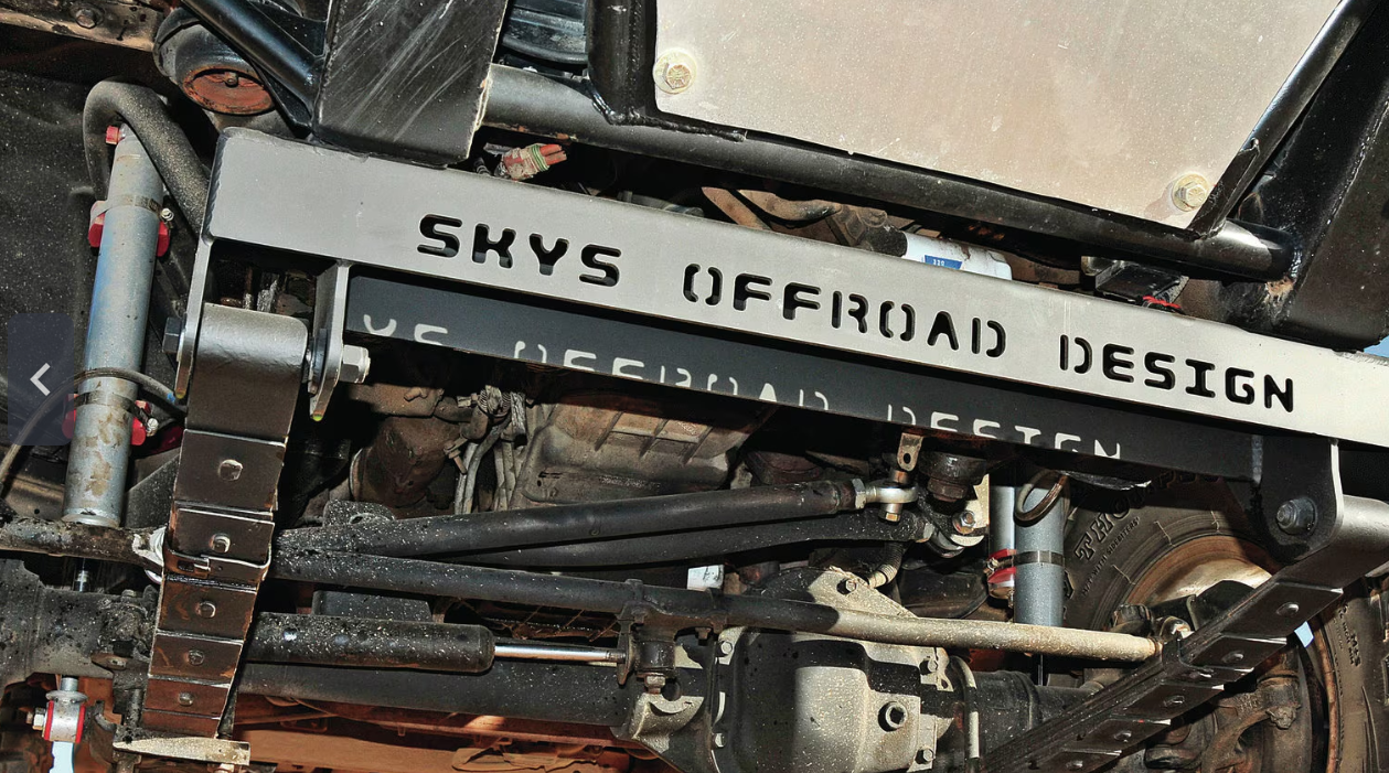 Transform your Chevy S-10 Blazer/Pickup with Sky's Off Road Design Solid Axle Conversion Leaf Hanger Kit. This professional-grade kit requires welding and fabrication skills, along with a comprehensive understanding of leaf spring suspension systems. The kit expertly hangs the front axle, but does not cover other necessary steps such as driveline, extended brake lines, and steering.
