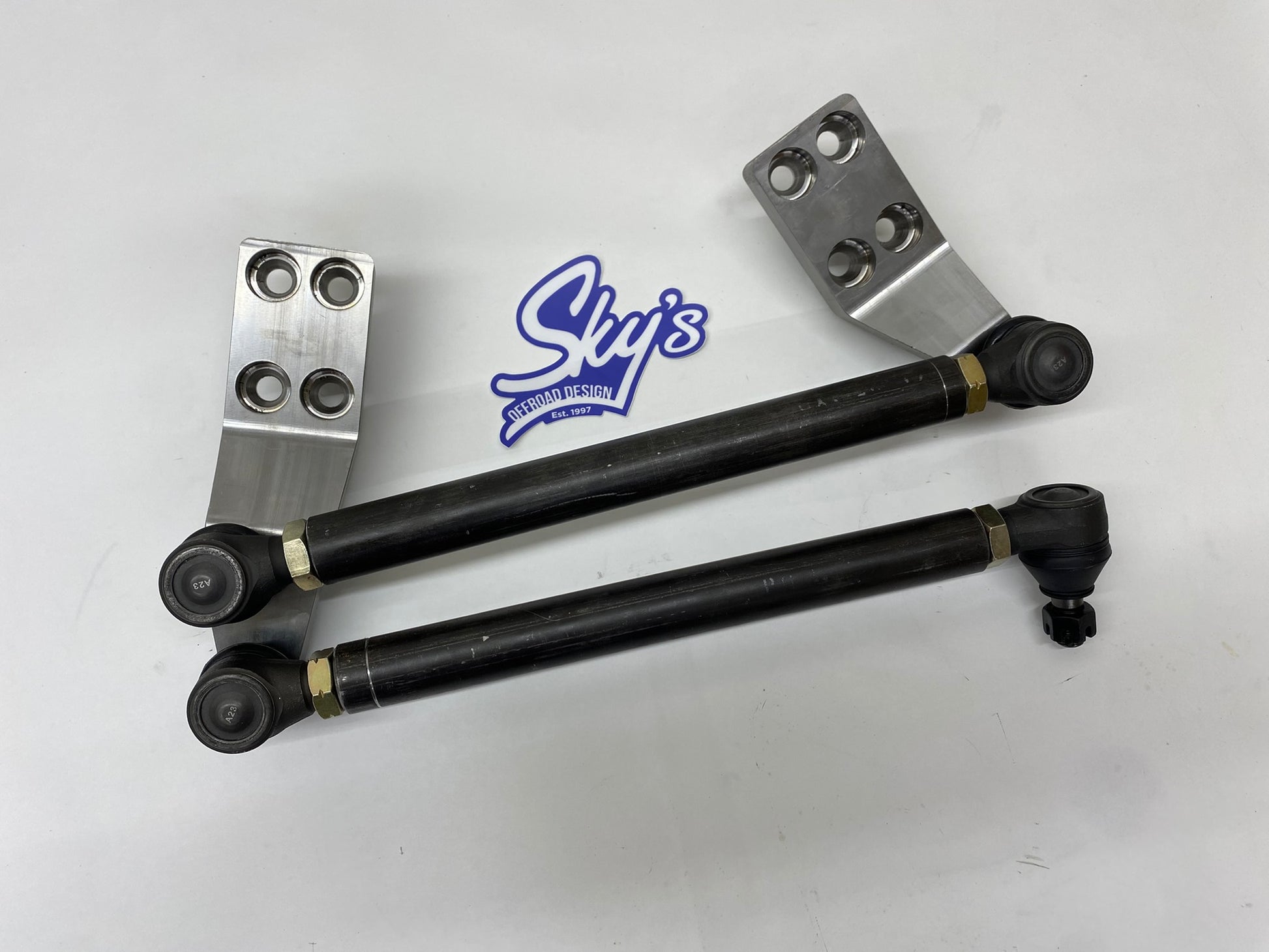 Sky Manufacturing also has shortened the tie rod/ drag link to king pin distance, increasing turning radius, eliminating tie rod to drag link interference, and allowing springs with more arch. 6.5" from king pin to drag link and 4.5" from tie rod to king pin.